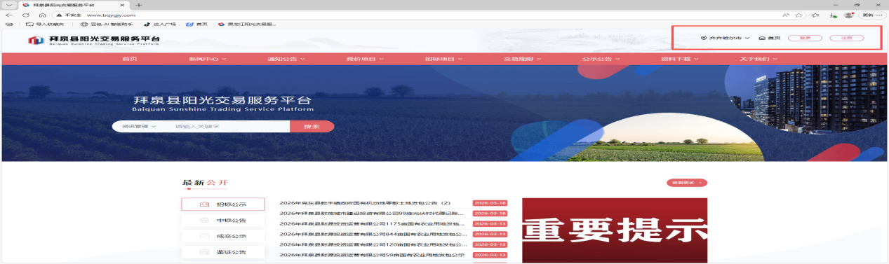 1.进入主页后点击右上角进行账号注册,填写身份信息(填写身份信息时用户类型分为自然人与企业,选好类型后根据所提示信息上传附件即可)